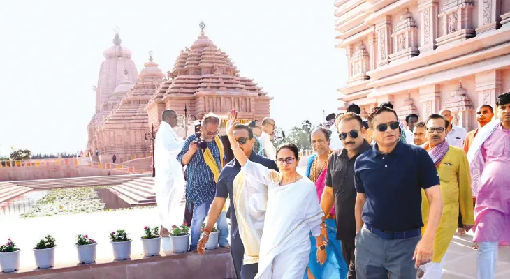 দীঘা: জগতের নাথ বাংলায়— মুখ্যমন্ত্রী মমতা বন্দ্যোপাধ্যায়ের দীর্ঘদিনের স্বপ্ন অবশেষে পূরণ হল। সকালে প্রাণ প্রতিষ্ঠা, বিশেষ পূজন। তার কয়েক ঘণ্টা পর, বুধবার বিকেল ৩টে ১০ মিনিটে সৈকতনগরী দীঘায় প্রভু জগন্নাথের নব আলয়ের দ্বারোদ্ঘাটন করলেন মমতা। সর্বসাধারণের জন্য খুলে গেল মন্দিরের দরজা। ভিতরে রত্নবেদিতে অধিষ্ঠিত প্রভু জগন্নাথ, বলরাম দেব ও দেবী সুভদ্রার বিগ্রহের সামনে প্রদীপ আরতি পর্বে দৃশ্যত তৃপ্ত লাগছিল বাংলার মুখ্যমন্ত্রীকে। প্রভুকে দর্শনের জন্য যেন মুখিয়ে ছিল মানুষ। দ্বারোদঘাটনের পর বেলা গড়িয়ে সন্ধ্যা হতে না হতে দর্শনার্থীর সংখ্যা বেড়েছে পাল্লা দিয়ে। এদিন ছিল অক্ষয় তৃতীয়া। বৃহস্পতিবার মে দিবস। ছুটির এই প্যাকেজে তাই এদিন থেকেই ভিড় আছড়ে পড়েছে সৈকতশহরে। আর সেই ভিড়ের একটাই গন্তব্য, নয়া জগন্নাথধাম। এই আবর্তে প্রভুর কৃপা গোটা রাজ্যের মানুষের কাছে পৌঁছে দিতে চান মুখ্যমন্ত্রী। দ্বারোদঘাটন পর্বে তাঁর ঘোষণা, তথ্য-সংস্কৃতি দপ্তরের মাধ্যমে মানুষের কাছে পৌঁছে যাবে জগন্নাথদেবের প্রসাদ। পৌঁছে দেওয়া হবে দেশের বিশিষ্ট লোকজনের কাছেও। সবমিলিয়ে মহাপ্রভুর আবাহনে দীঘা এখন পুণ্যভূমি!