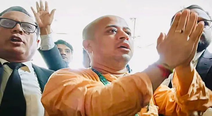 ঢাকা: অক্ষয় তৃতীয়ার দিন রাষ্ট্রদ্রোহ মামলায় জামিন পেয়েছিলেন হিন্দু সন্ন্যাসী চিন্ময় কৃষ্ণদাস। গত সপ্তাহে বাংলাদেশ সম্মিলিত সনাতনী জাগরণ জোটের মুখপাত্র চিন্ময় কৃষ্ণদাসের জামিন মঞ্জুর করে সেদেশের হাইকোর্ট। বিচারপতি মহম্মদ আতোয়ার রহমান ও বিচারপতি মহম্মদ আলি রেজার বেঞ্চ সেই আদেশ দেয়। কিন্তু তাঁর জেলমুক্তি হয়নি। তার মাঝেই অন্য একটি মামলায় গ্রেপ্তার করা হয়েছে চিন্ময় কৃষ্ণদাসকে। গত বছরের নভেম্বর মাসে চিন্ময় কৃষ্ণের জামিনের মামলাকে কেন্দ্র করে চট্টগ্রাম আদালত চত্বরে ব্যাপক অশান্তি হয়। সেই অশান্তি হিংসাত্মক রূপও নিয়েছিল। সেই হিংসার জেরে মৃত্যু হয় আইনজীবী সাইফুল ইসলামের। অভিযোগ, আদালত চত্বরেই তাঁকে কুপিয়ে এবং পিটিয়ে খুন করা হয়। সেই ঘটনাতেই চিন্ময় কৃষ্ণকে গ্রেপ্তারির নির্দেশ দিয়েছে চট্টগ্রাম আদালত।
